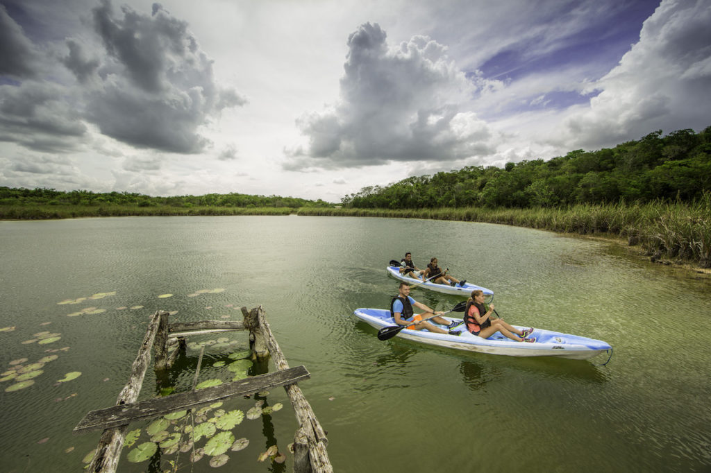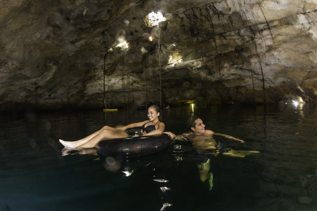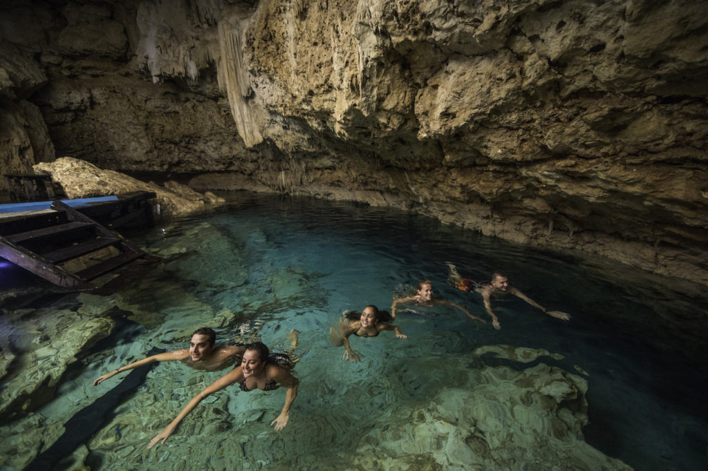 A cenote (meaning well or pit in Mayan) is the word used to describe a natural well made of limestone that has underground water. Each cenote is inhabited by colorful fish, some have cliffs to jump from or you can even find a zipline. They are ideal too, to practice snorkeling and kayak. There are 3 types of cenotes: cavern, semi-open and open. The Mayan Riviera is aplenty with these natural wonders!.